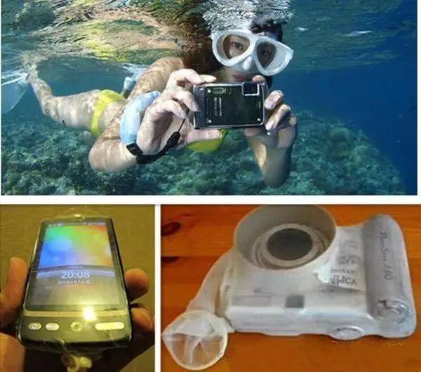 你担心宝贝相机、手机湿了吗?用它套起来吧,效果不是一般的赞!当然,包好的相机还能潜水拍照呢!