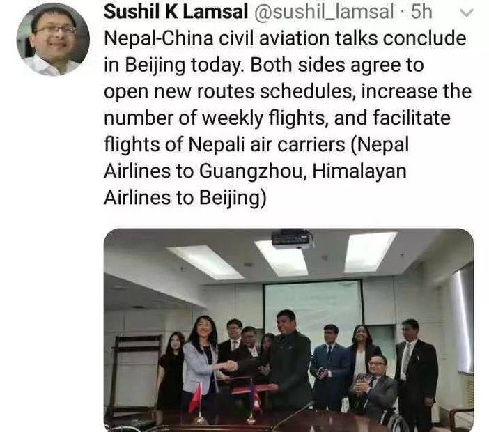 根据尼泊尔驻北京大使馆的新闻稿,这项协议是在7月26日达成的——中尼双方民航局代表在举行为期两天的会议之后,签署了一份航空合作谅解备忘录。