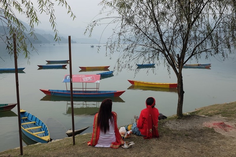 二百公里路走了七个小时。博卡拉要比加都清静多了,也整洁一些。司机将我们拉到费瓦湖畔的一座红砖楼房院内,这就是我们预定的酒店,建筑的风格有些殖民时期的感觉,红砖墙上装饰着砖雕,花园里植物茂盛。待者端来几怀橙汁,又疲又渴顾不得姈持,牛饮而尽。