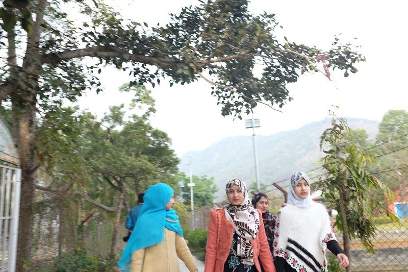 费瓦湖是旅游胜地。湖上遍布着游船。我有些失望,感觉与我们那里的水库差不多。沿湖畔小道漫步走着,飘兴致昂然的找寻着把费瓦湖与鱼尾峰拍在一起的角度。忽然眼前一亮,迎面走过来几位戴着头巾的穆斯林美女,出尘脱俗。我慌乱的把相机放在胸前,连续按动快门。其实,她们已经发现我在偷拍,与我擦肓而过时,回首鄢然一笑。倒把我弄得面赤耳红。博卡拉是座旅游城市,街面上全是旅行社或旅游用品商店,飘买了支登山杖,此行的装备也就齐全了从博卡拉到徒步起点南桠浦(Nayapul)还有一个小时车程,仍然是租车前往。行驶到山顶看得见安娜群峰的地方,司机停车让我们照相。