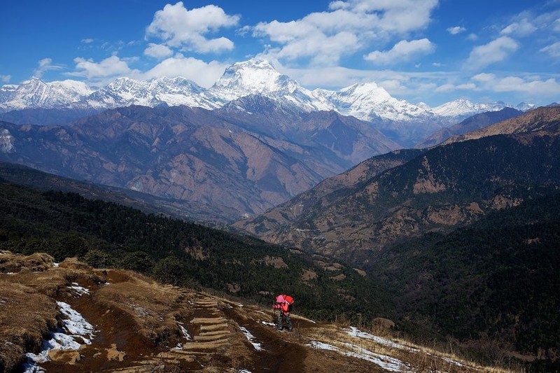 出行日期订在春节结束时,这时是尼泊尔的旱季,气候适宜徒步,也容易看到风景。最终决定成行的有stone、xing哥、飘和我四人。因为是负重徒步,行装也就减到最轻,只带了睡袋和必要御寒衣物,食品只带了糖果和速溶饮料之类的。考虑到山上肉食缺少,我准备带些香肠、午餐肉等成品熟食,stone诃斥到:没这么麻烦,当地人吃什么我们就吃什么。纠结再三,我还是只带了台富士X100S,大相机实在怕背不动。飘还准备带些妖娆的裙装之类,被我晓之以理,严词打消了她的念头。
