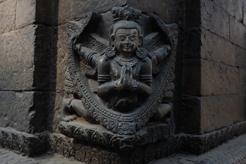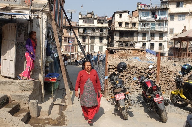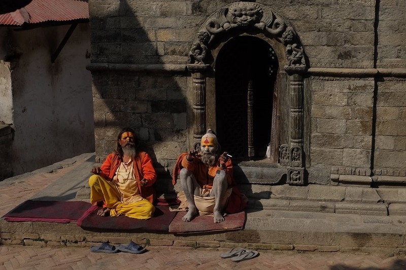加都房屋破旧,尘埃飞扬,街道狭窄,但车辆却不少,大都是铃木的小车和印度的塔塔,行进缓慢。我们乘坐的塔塔越野车在人车比肩接踵的泰米尔区穿行良久,钻进一条僻静小巷,来到达瓦为我们预订的酒店。酒店名是富士山酒店,规模不大,但整洁温馨,大厅侧旁还有天井小园可闲坐品茗。从店名和风格看像是日本人开的。果然,stone在前台办完入住手续后说店员都能讲一口流利的日语。达瓦已帮我们办好徒步安娜普尔纳所而的证件ACPC 与TIMS,到博卡拉的车和酒店也已预定好,我们还换了十万尼币,大约6千人民币,飘执意要给这笔巨款留影,说是要找找土豪的感觉。万事齐备,我们请达瓦共进晚餐。