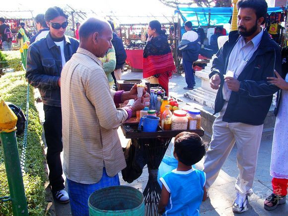 ,便来到猴子庙(斯瓦扬布寺),当地的小吃摊的卫生条件实在不敢恭维,只能远观。