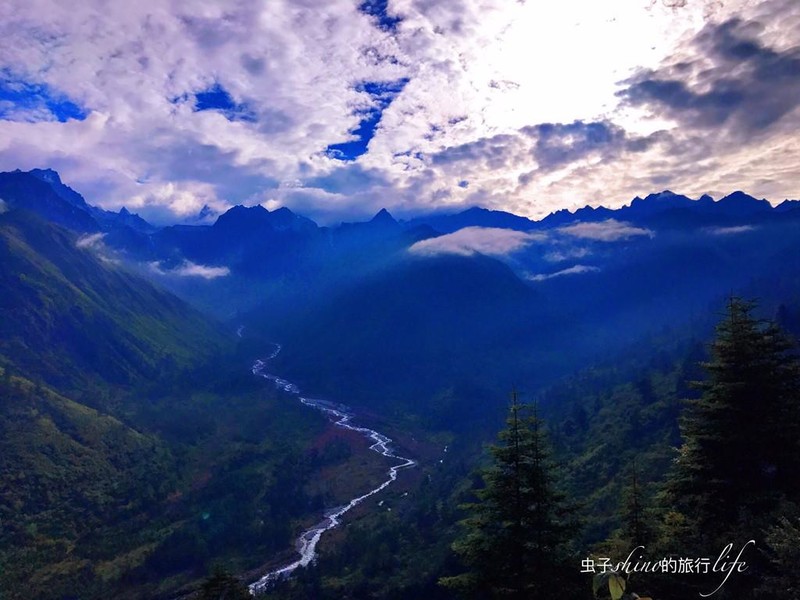 7月16,昨晚睡在四十层楼高的露台上,简直舒服的不要不要的,半夜狂风大作,打雷闪电,过足了户外的瘾,这么舒适的户外环境真是难得,早晨7:50就起床收拾东西,到了集合地点也九点过了,终于出发了,这么久的期待幻化为现实,朋友们都在叮嘱我注意安全,问我有没有觉得紧张,我真的觉得前所未有的轻松和期待,翻泥巴山隧道,一片迷雾,天空像有一个风暴眼,风起云涌,气温降的很快,在四川的一个好处就是,走到哪里的饭菜都那么可口。