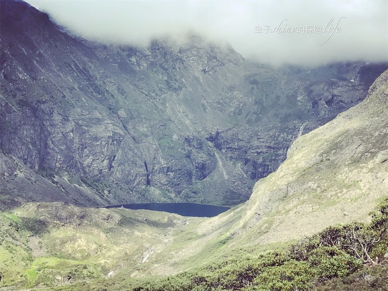 经历过今天,尤其是看清楚整个山谷的地貌之后,躺在这里都会觉得没那么安心了,小谭问我:昨晚有一次巨大落实的声音你听到没有?感觉石头都要砸进帐篷了!~看样子在这里,谁都无法安然睡去。整个夜晚我感觉我们几个都有点惊魂未定的感觉,只能说睡的很轻很轻,迷迷糊糊的状态,我都不确定自己是不是真的睡着了,半夜的时候我拉开帐篷,打开头灯,只能看到浓雾夹杂着细雨,能见度五米开外就看不清楚了,关上头灯,是那种伸手不见五指的绝对黑暗,我被黑暗包裹着,我伸出手,什么也看不到......