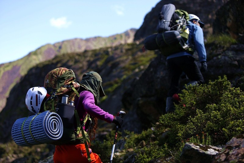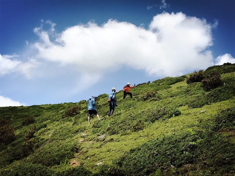 翻几条河,越过了几座山岗,海拔一路拔升,第一天拔升1300米,烈日暴晒,脱水令我高反了,头痛、呕吐经过一夜的折腾,清晨醒来后被逼着吃了半个饼一碗小米粥,登山就是这样、基本每天都是同样的状态。