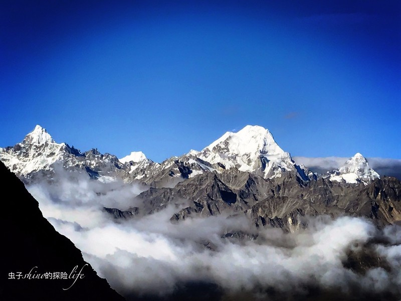 还是喜欢云上的日子~一路上雾气一点没有要散的意思,还在下着小雨,我几乎是逃命出来的,顾不上缺氧头疼,也顾不上肺部的压迫感,只想快速穿过落石地带,还要时刻听着冰崩和落石的声音从何方向而来,贯彻山谷的轰鸣声听的我们心惊胆战只想逃命,只是快速的下撤也不知道该往何处躲闪。