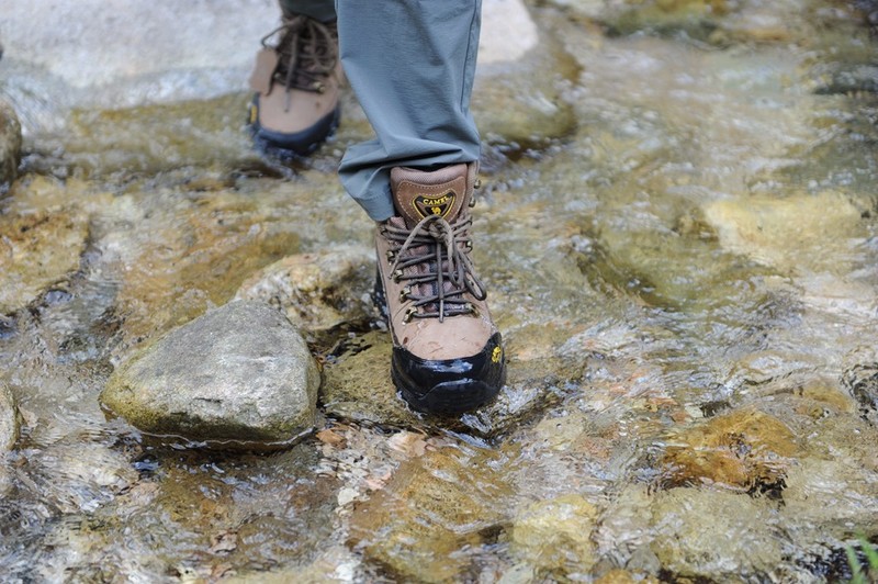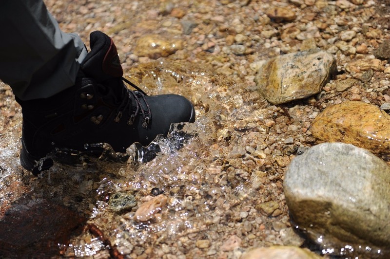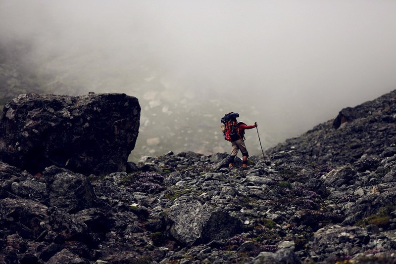 今天直接上升1570米,线路我称之为:落石线路,开始一路在石海上攀登,雾很大,能见度很差,基本在5-20米之间,所以我们相互跟的很紧,不然一片迷雾上来,几米外的队友就会消失在我的视野里,线路是逆冰川而上,冰碛堤的线路全部都是堆积的大小岩石,雾气很大看不清楚峡谷的地形和高空头顶上方的情况,时不时可以听到云雾中落实的声音,但是可以确定的是,看岩石的状态,我们的线路全部都在落石区,耳听四面,随时留意,准备逃命。我真的很想走快,赶快走出这片狭窄压抑的落石区,走了一身的汗出来,却还是走不快,全是各种石头堆积到处都是路到处没有路!再来说说这双徒步登山鞋,黑色和深棕色两个不同款式,但是相同的是,防水性能很好,一路走下来没有任何渗水,鞋内脚非常干爽!~鞋子包裹脚的感觉也很好,高帮还能防止脚踝扭伤。