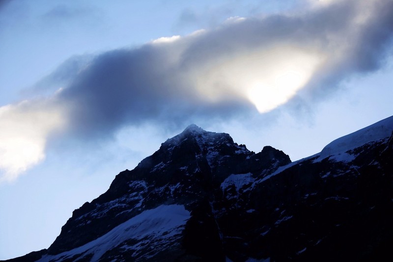 迷迷糊糊中等待天亮的到来,这一夜,仍旧听到了5次冰崩和落石的声音,没有人说话,没有任何交流.......