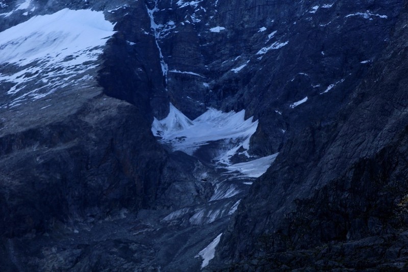 我想我大概还是怕死,所以才是这种状态。每一步都需要格外小心,不然落石,或者脚下一滑,就一定会受伤,山上每一步真的都要格外留意,走在冰川上,时不时听到冰川崩塌的剧烈声响和振动,随后就是石头的崩塌声音,这个时候我都会站在这里不动,仔细听声音传来的方向,留意头顶的岩石是否坠落。