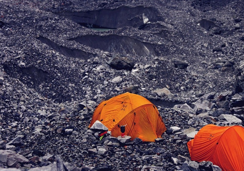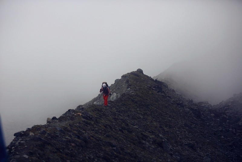 晚上六点半左右,天气开始变得糟糕起来,云雾上来了以后,一切都变得湿漉漉的,令人觉得很不舒服,海拔上升的太快,我的头部觉得有“怎么可能,你怎么能会有高反?”他们四个在搭帐篷,帐篷搭好以后,我钻了进去,就再也么有出来,顾铭在烧开水、煮小米粥,顾铭是一个特别好的高海拔向导,感觉永远都不知道疲惫,永远都会有体能去照顾所有人。此情此景只是觉得很熟悉罢了,想起在慕士塔格峰他端过来的小米粥,拯救了在6200米狂吐不知的我,既然选择了登山,这样的死循环,势必都要不断的循环存在了。在山上吃不下东西的时候,顾铭总会逼着我吃,这真的很痛苦,喝了些粥之后,就一直躺着,外面在下雨,湿冷,他们几个在聊天,还说要打扑克,我实在没兴趣也没精力,就这样迷迷糊糊的躺着睡着了......