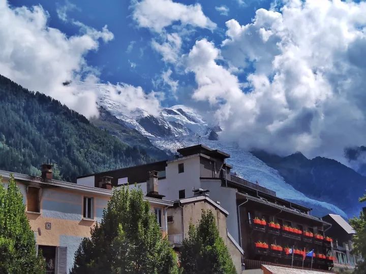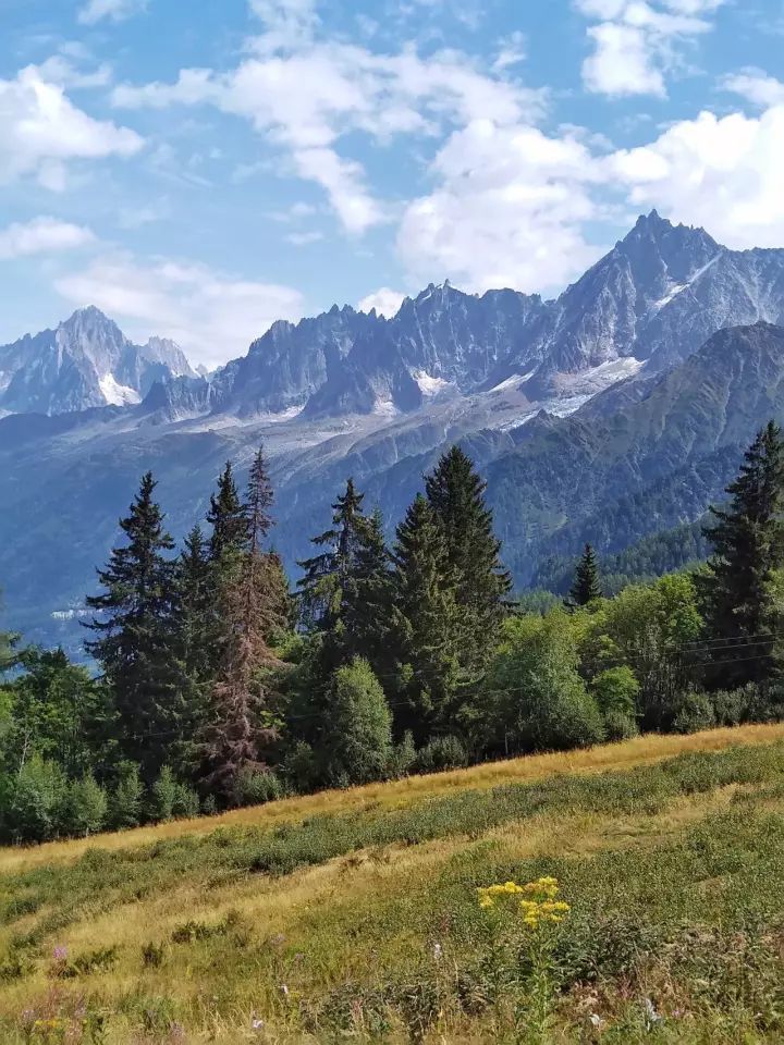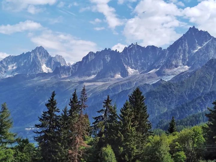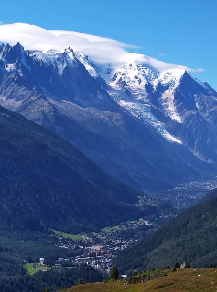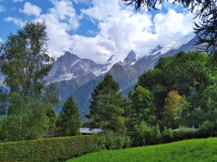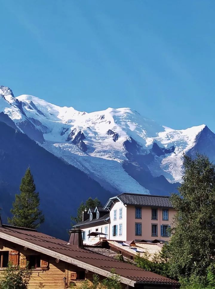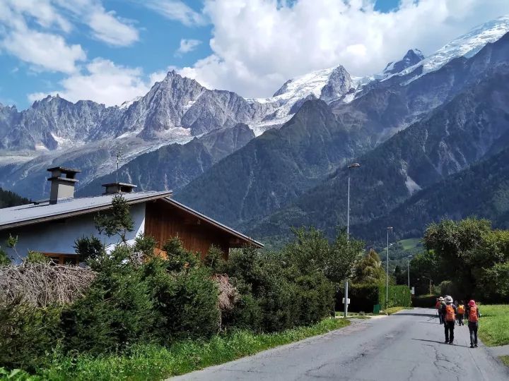 出发徒步的早上,阳光明媚,清晰可见勃朗峰