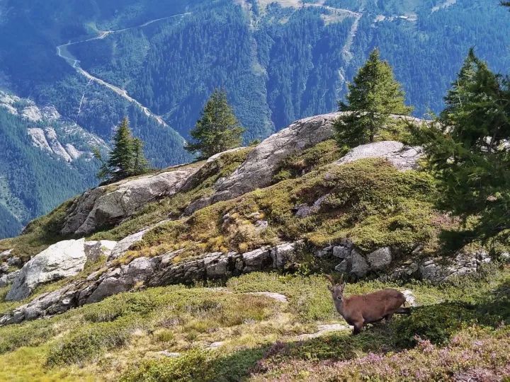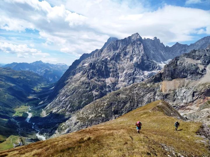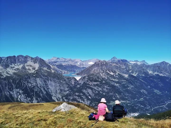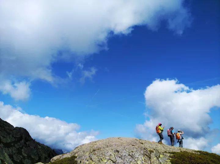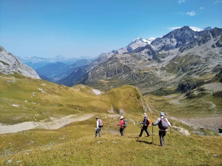 到达海拔2665米的Fours垭口,这是本次徒步过程中最后一次在高处看到勃朗峰。高处风光无限,大家忍不住坐在石头上唱歌,一曲完毕,Sebstain连忙说:我不认识你们,这还没喝酒呢!