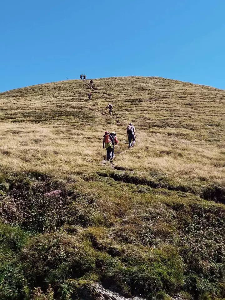 继续往Balme垭口爬,八月底的草坡也渐黄