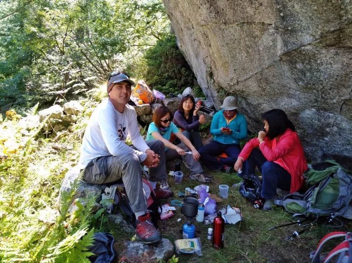 休息完毕继续下山,找了个阴凉的地方吃午饭煮咖啡喝
