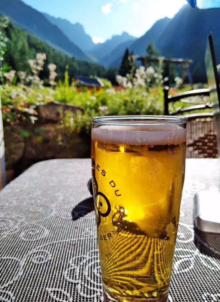 下午一到Refugee,阳光正好,蔡蔡就下去要了一杯啤酒喝。随后的晚餐个个酒兴开始被调动起来,大家又点了一瓶红酒。从徒步第一天开始,中国女酒鬼横扫勃朗峰的气势已经初露端倪。