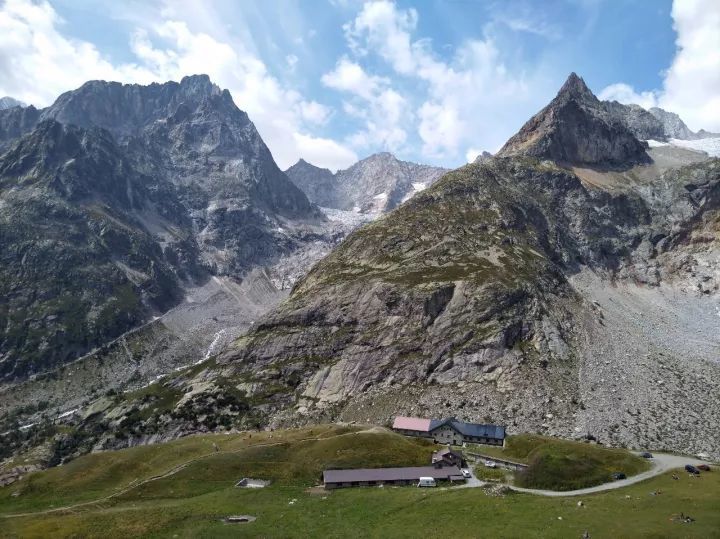 搭车从河谷前往Courmayeur,一路风景也是相当美。在库马约尔转了一个巴士,再沿着公路爬了20分钟,终于到达了我们的景观无敌Refugee.