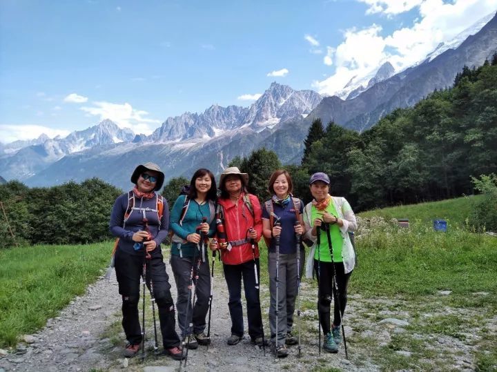 每年七、八月份是环勃朗峰的最好季节,六月还有积雪,九月开始降温,而七、八月日照充足,也是勃朗峰气候最温和的时段。这时候的TMB路上,成千上万人,老老少少,非常热闹。