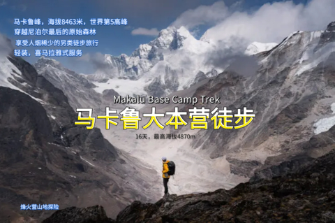 马卡鲁山海拔 8,463 米,是世界第五高峰,位于尼泊尔东部。坐落于珠峰以东22千米,干城章嘉峰以西 80 千米。处