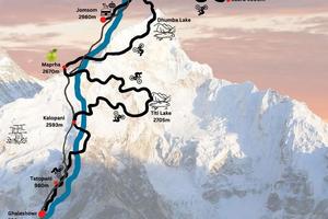 离开Marpha,穿过一座吊桥。沿着河骑行,大部分时间都是平路。到 Kobang 村。从这里开始,我们在越野道路骑行 4 公里。有些路段比较陡峭。到达了蒂蒂湖(2705 米)。花一些时间欣赏湖岸的景色,从这里欣赏 Dalugiri 的惊人景色。然后离开湖,下坡回到河边。到达 Kalopani (Blackwater) 村。在这里过夜。