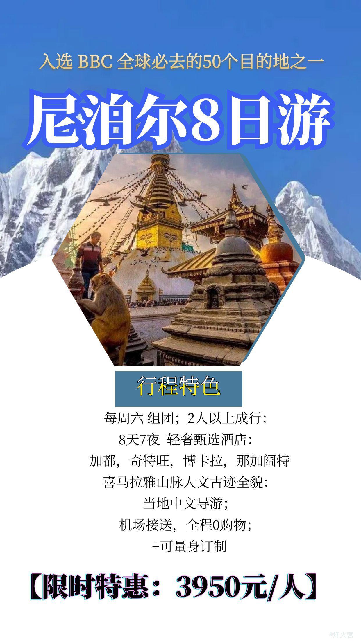 尼泊尔全境人文古迹游览,8天。2人成行。 每周六组团