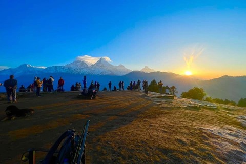 在Poon Hill的西北方,著名的道拉吉里峰(8172米)引领周围的群峰一字排开。两个地点的相对方向正好特别适合观看雪山的日出。在PoonHill的东北侧则是有7000米以上的Baraha Shikhar(7647米)、安娜普尔纳南峰,以及神山鱼尾峰(海拔6,993米)。在Poon Hill观看的雪峰,可以说是180度的,一字排开,非常宏伟。在晨曦的照射下散发着圣洁的光芒。